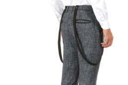 How to be business- casual: il pantalone con le bretelle removibili ha il vantaggio di esser perfetto h24, dal meeting lavorativo all’aperitivo con le amiche, senza dover passare da casa.