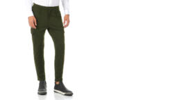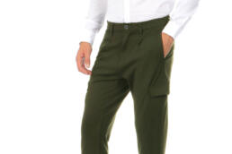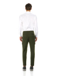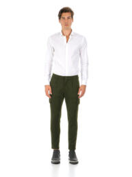 Meno aggressivo del solito, si traduce in pantaloni cargo con pences dalla vestibilità slim