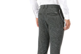 La città moderna incontra l’eleganza: il pantalone in jersey è una scelta vincente per un business look rilassato che coinvolge gli affari con esplicite sfumature di grigio